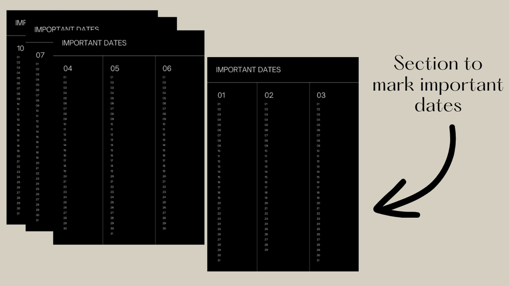 - Space for important dates